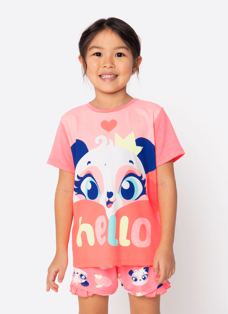 Pijama Manga Curta Viscolycra Menina Panda Romântico