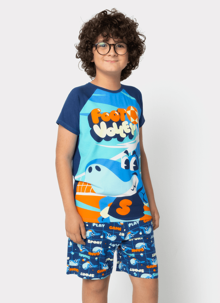 Pijama Manga Curta Viscolycra Menino Tubarão Futevôlei