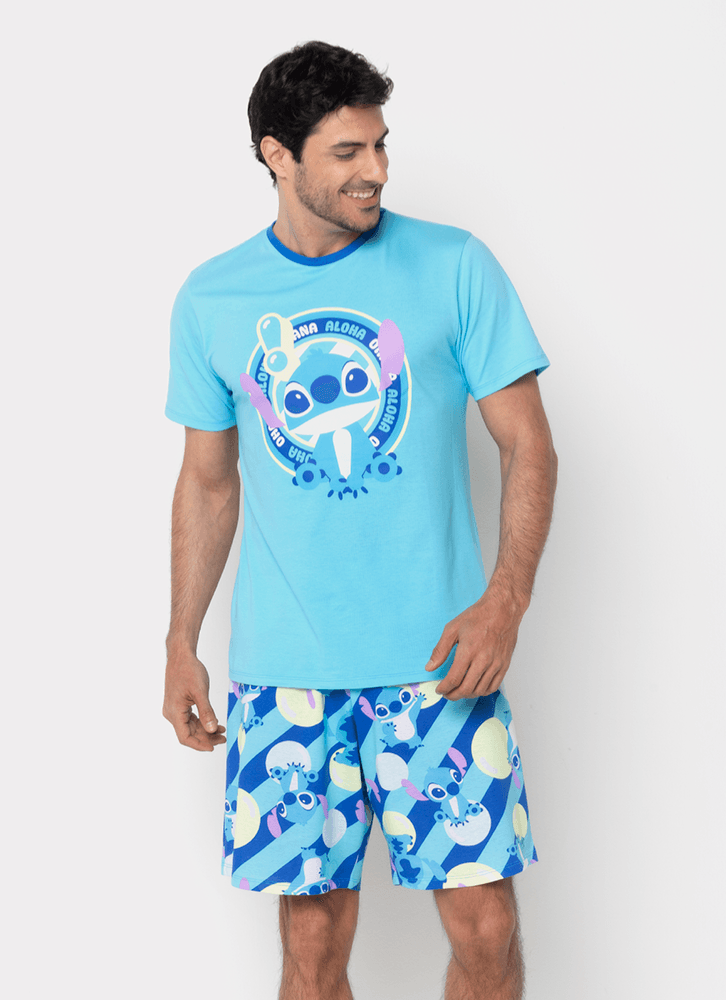 Pijama Manga Curta Algodão Masculino Stitch