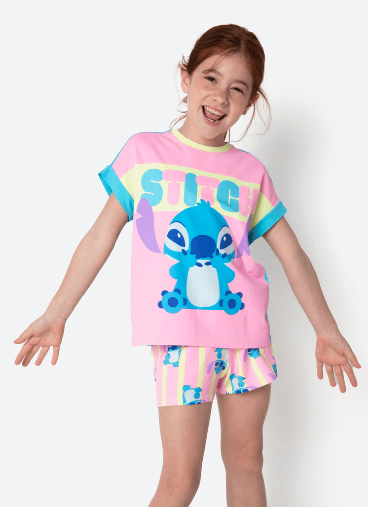 Pijama Manga Curta Viscolycra Estampado Menina Stitch