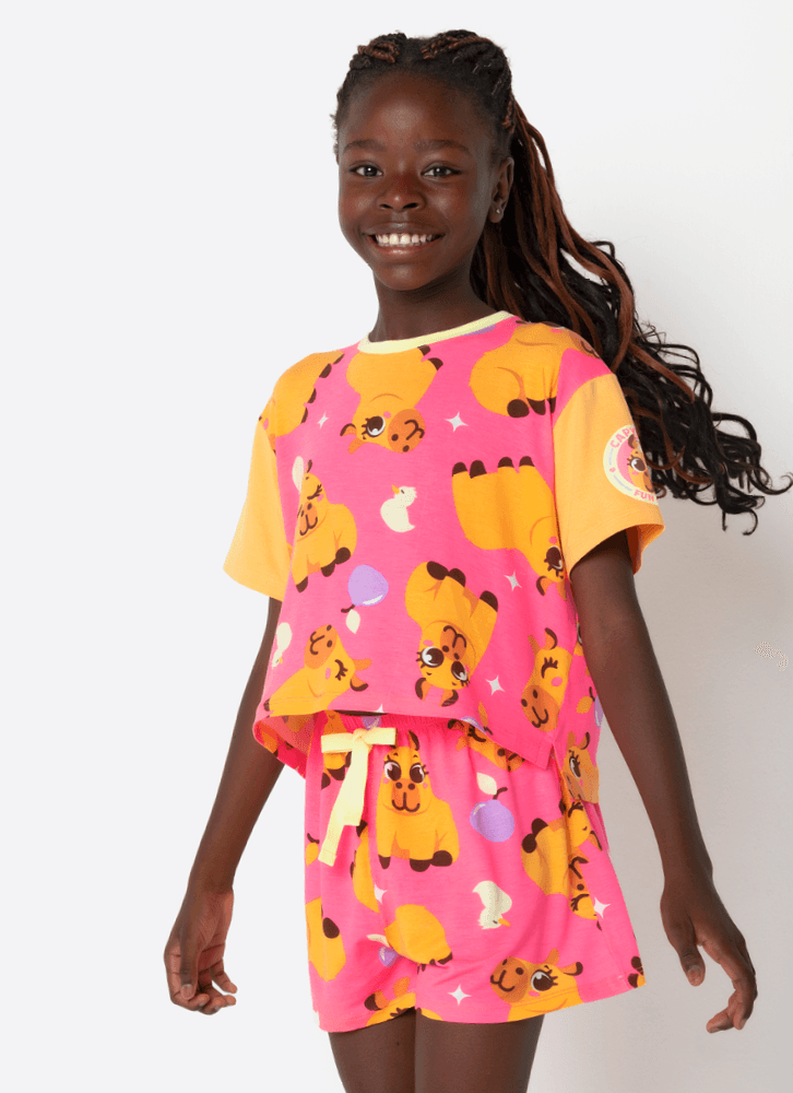 Pijama Manga Curta Viscolycra Menina Teen Capivara Vibes