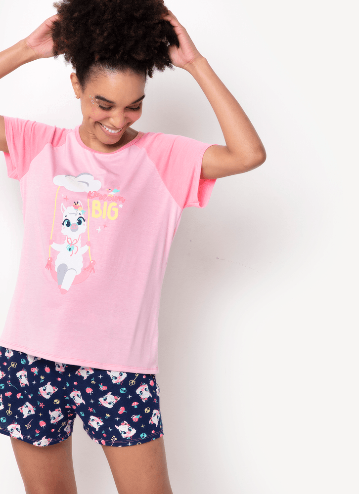 Pijama Manga Curta Feminino Viscolycra Lhama Secret