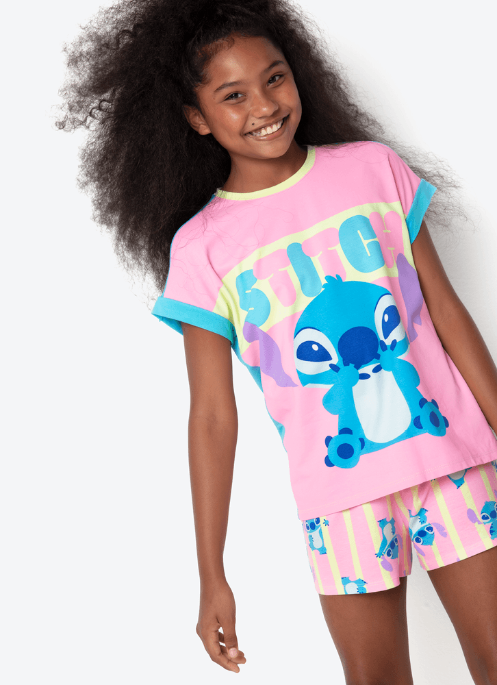 Pijama Manga Curta Viscolycra Menina Teen Estampado Stitch