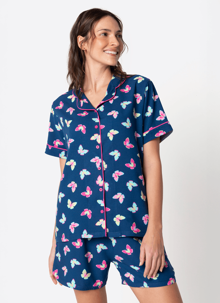 Pijama Manga Curta Viscose Feminino Borboletas