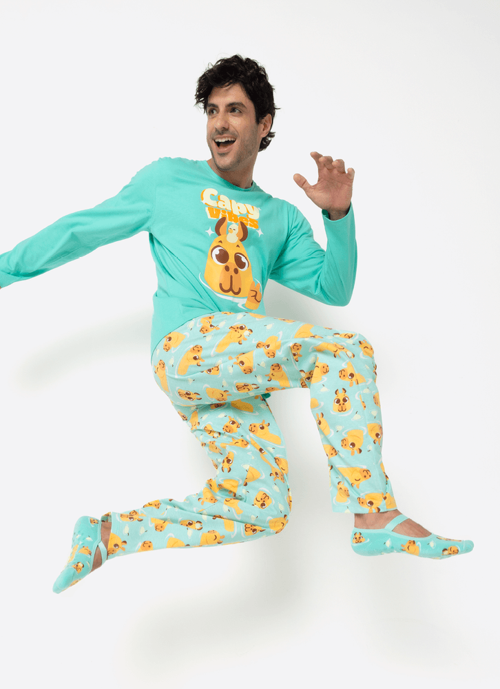 Pijama Manga Longa Algodão Masculino Capivara Vibes