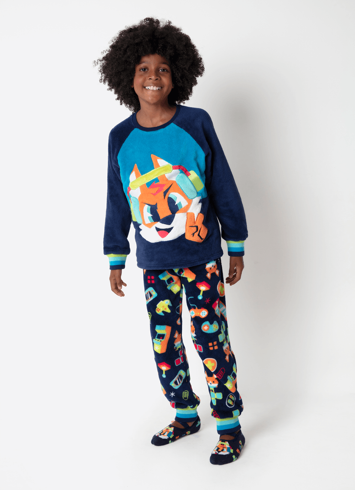 Pijama Manga Longa Soft Menino Teen Raposa Gamer