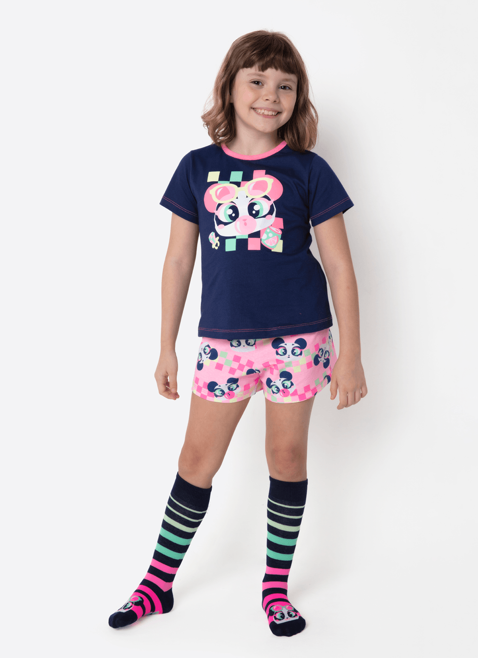 Pijama Manga Curta Algodão Menina Teen Panda Miami