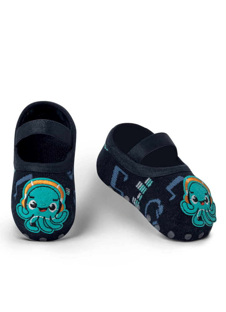 Meia Menino Sapatilha com Antiderrapante e Aplique Polvo