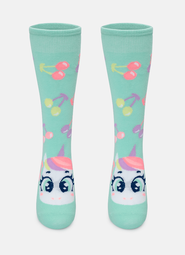 Meia Cano 3/4 Menina Unicórnio Cherry
