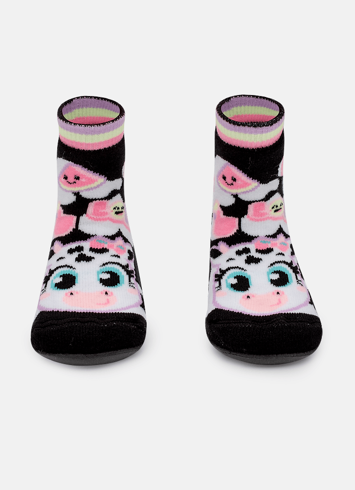 Meia Soquete Com Sola Emborrachada Bebê Menina Vaca Patches