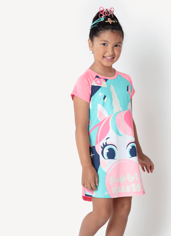 Pijama Longo Manga Curta Menina Algodão Unicórnio Skate