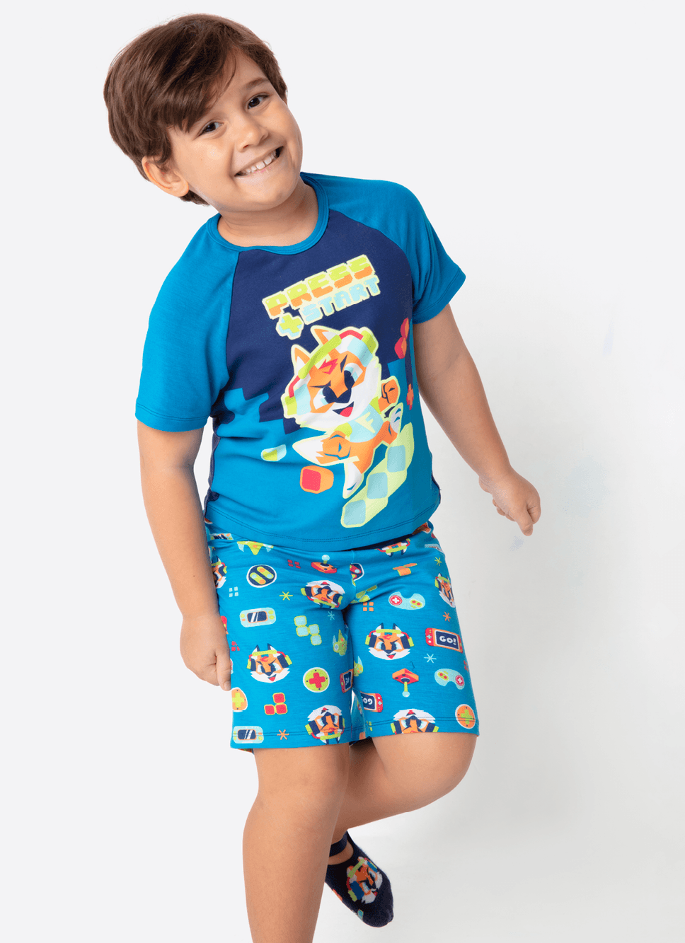 Pijama Manga Curta Viscolycra Menino Raposa Gamer