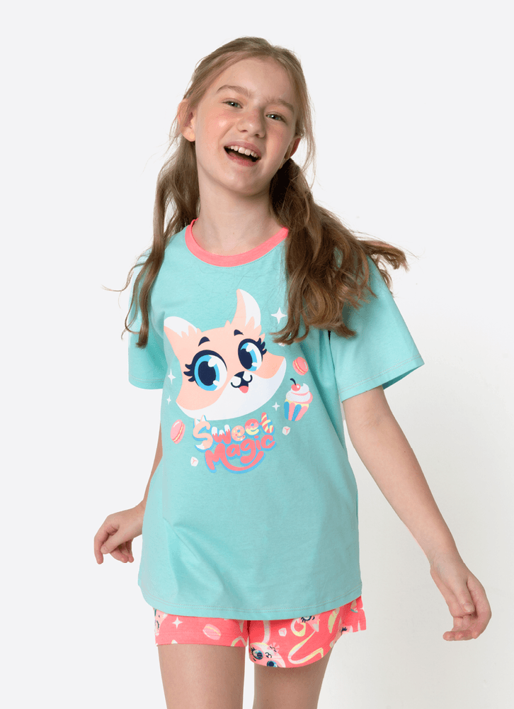 Pijama Manga Curta Algodão Menina Teen Raposa Confeiteira
