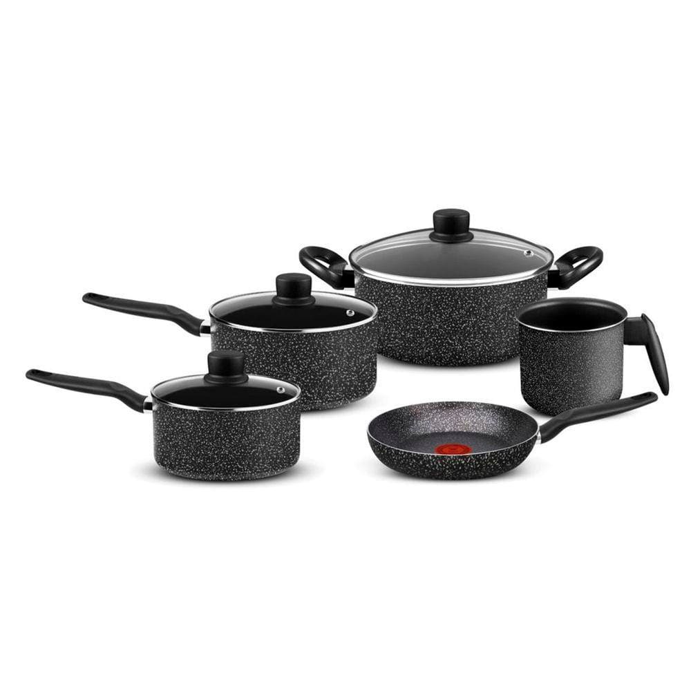 Jogo de Panelas Rochedo Robusta 5 Peças Antiaderente Resist 3X Tampa Vidro Grafite