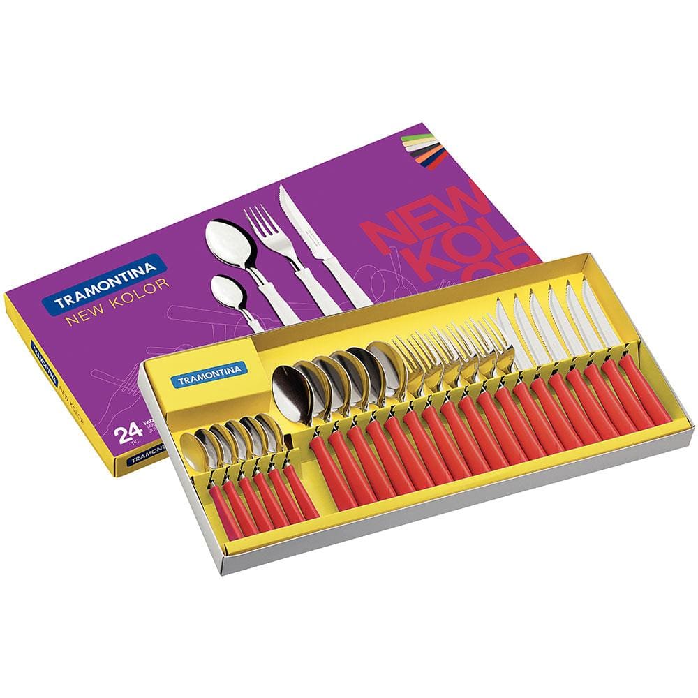Faqueiro 24 Peças Tramontina New Kolor em Aço Inox - Vermelho