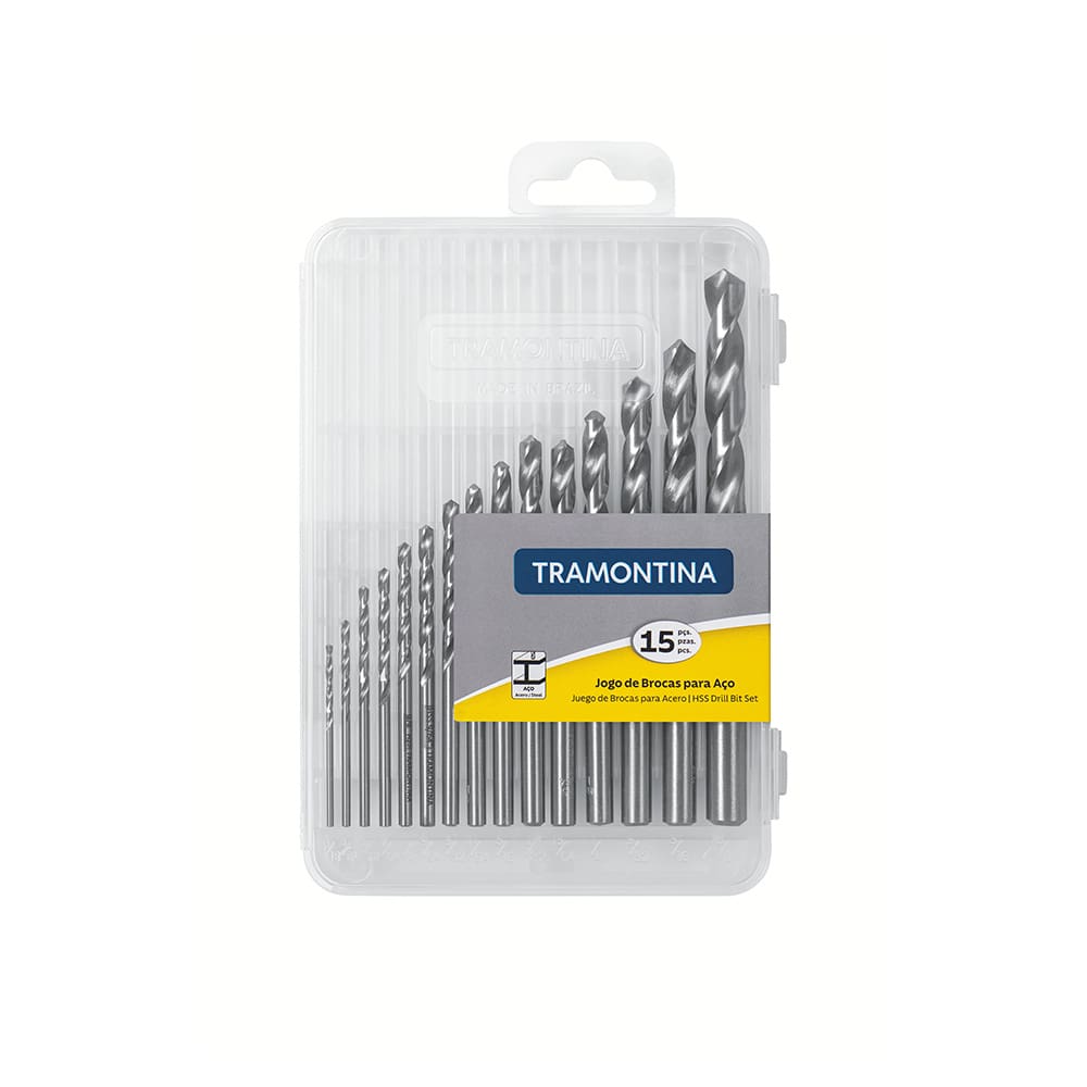 Jogo de Brocas HSS em Polegadas para Aço Tramontina DIN 338 - 15 Peças