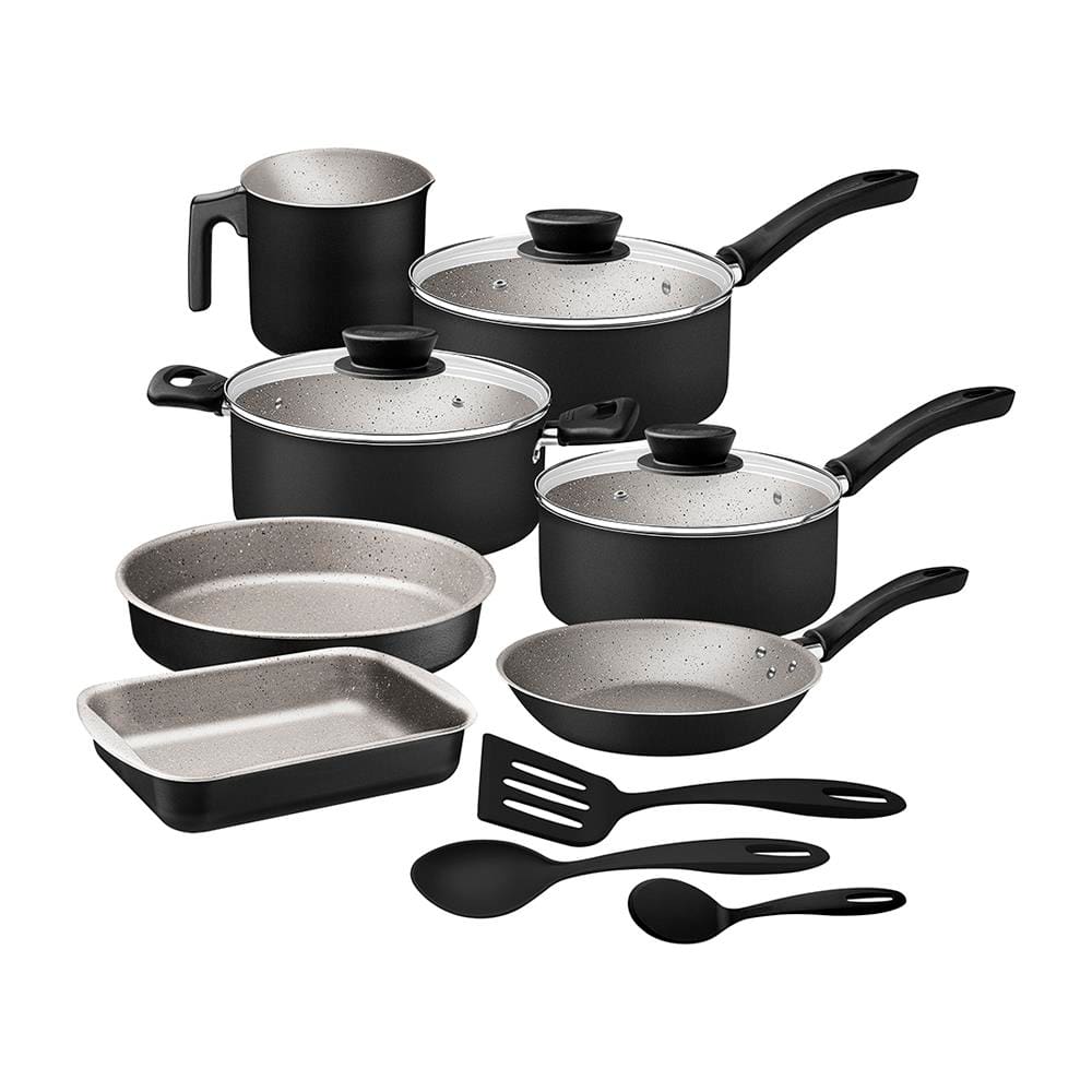 Jogo de Panelas Tramontina Linz 10 Peças Starflon Max Tampas de Vidro Preto