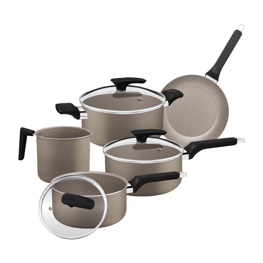 Jogo de Panelas 5 Peças Tramontina Milazzo com Revestimento Antiaderente Starflon - Amêndoa