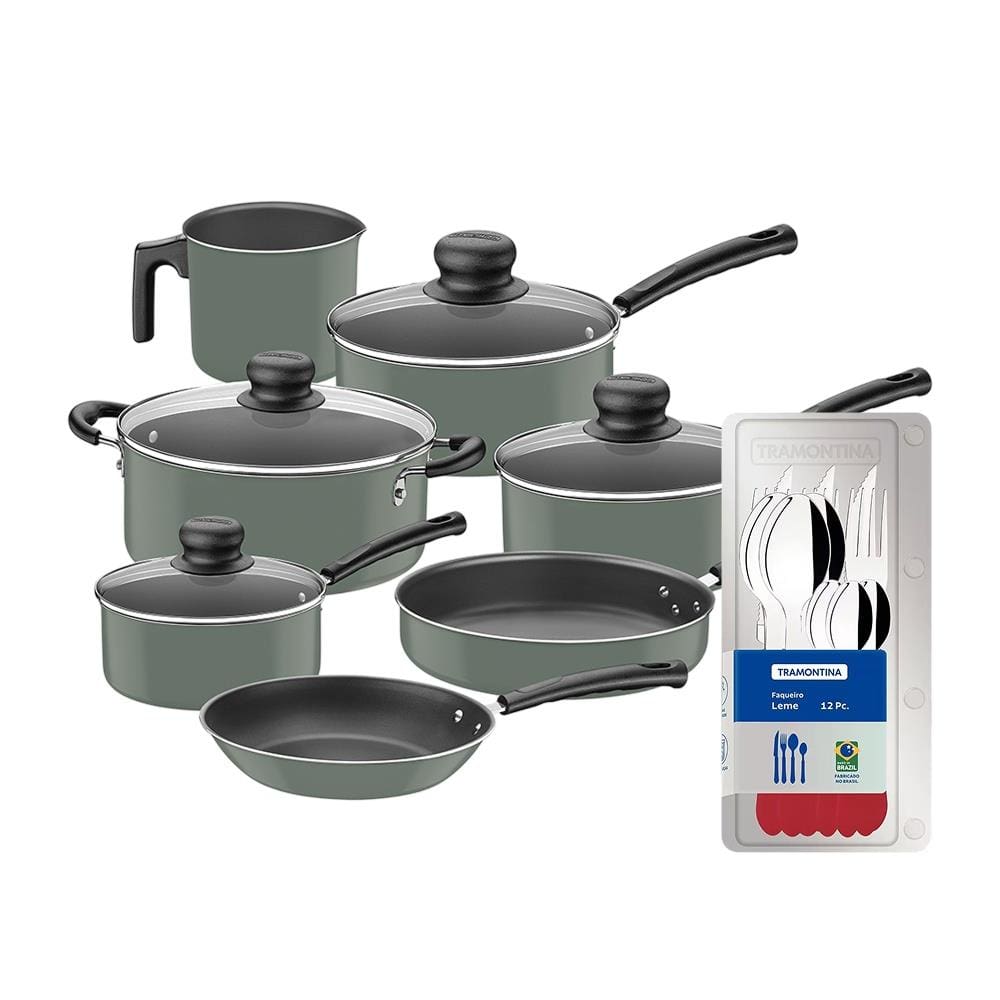 Conjunto de Panelas 7 Peças Tramontina Versalhes Starflon Max Verde + Faqueiro 12 Peças Tramontina Leme Vermelho