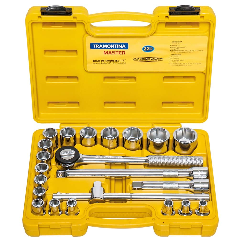 Jogo de Soquetes Sextavados Tramontina 1/2" com Acessórios + Maleta