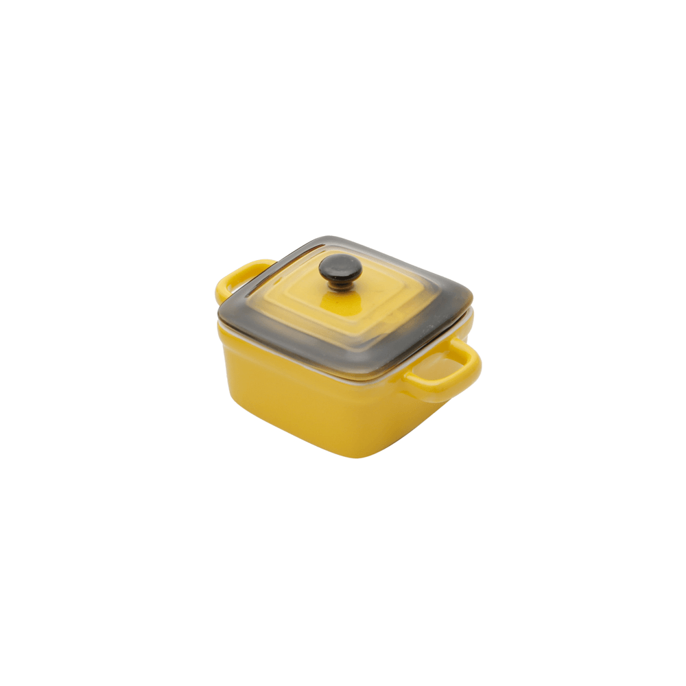 Mini panela Quadrada porcelana, com tampa - Amarela