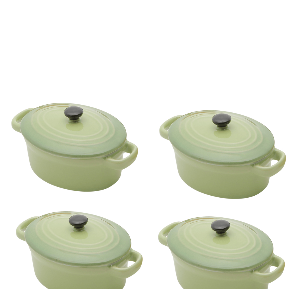 Conjunto de 4 mini panelas Amarela ovais de porcelana, com tampa - 15cm