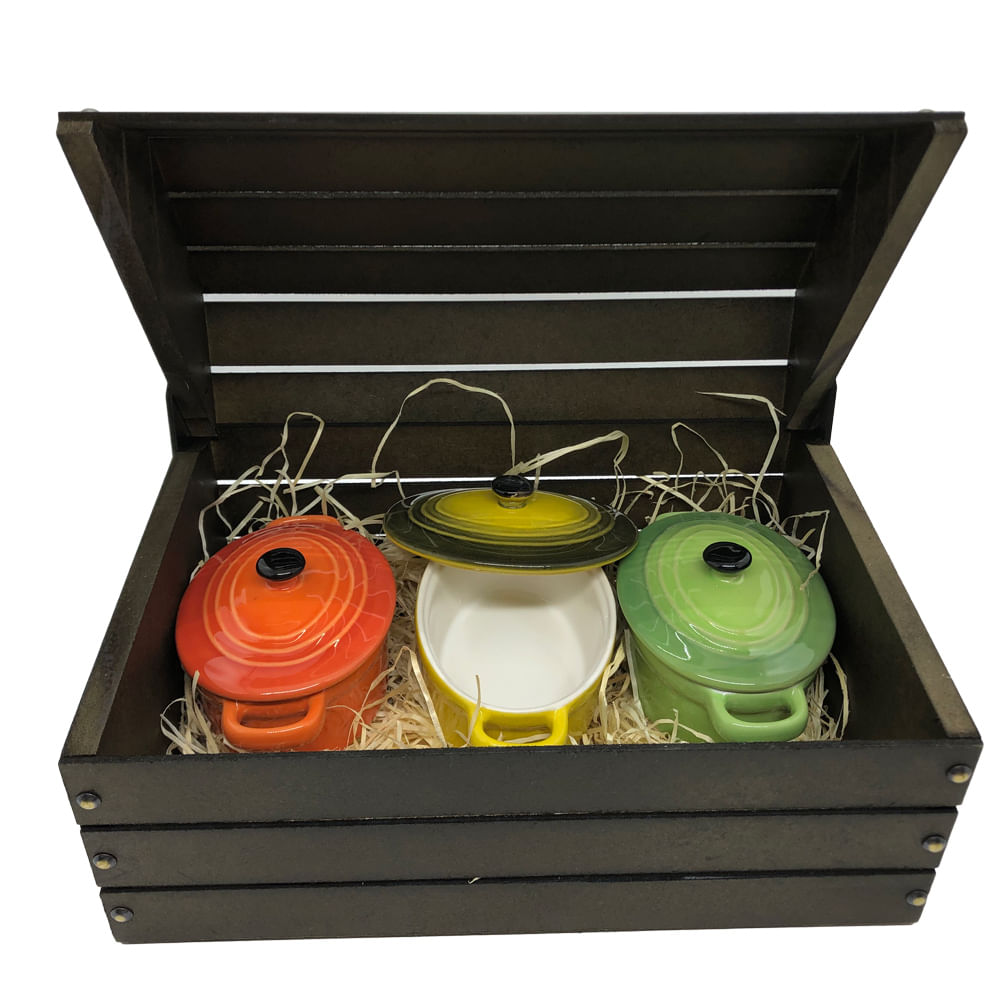 Conjunto de 4 mini panelas Laranja ovais de porcelana, com tampa - 15cm