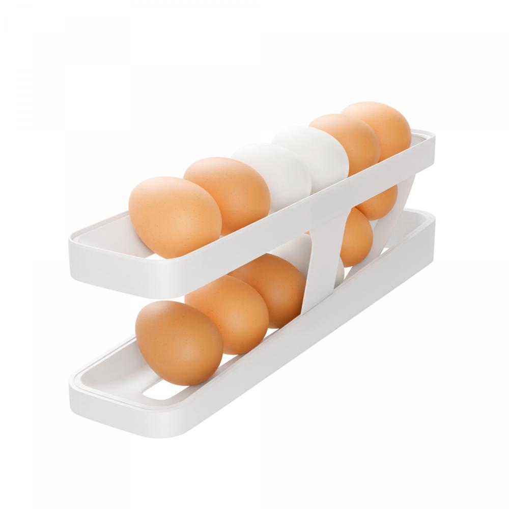 Porta Ovos com Rolamento Automático em Plástico Branco