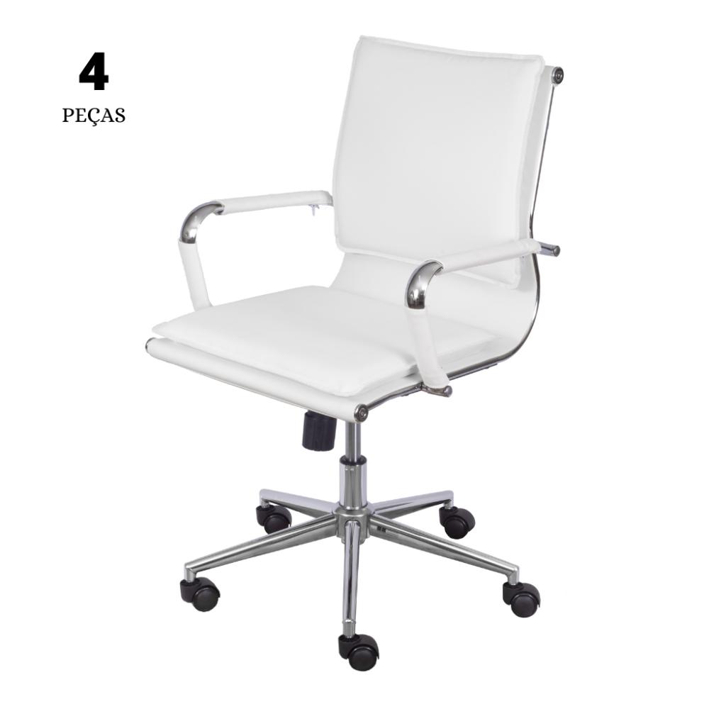 Conjunto 4 Cadeiras Office Soft Branca Base Cromada Rodízio