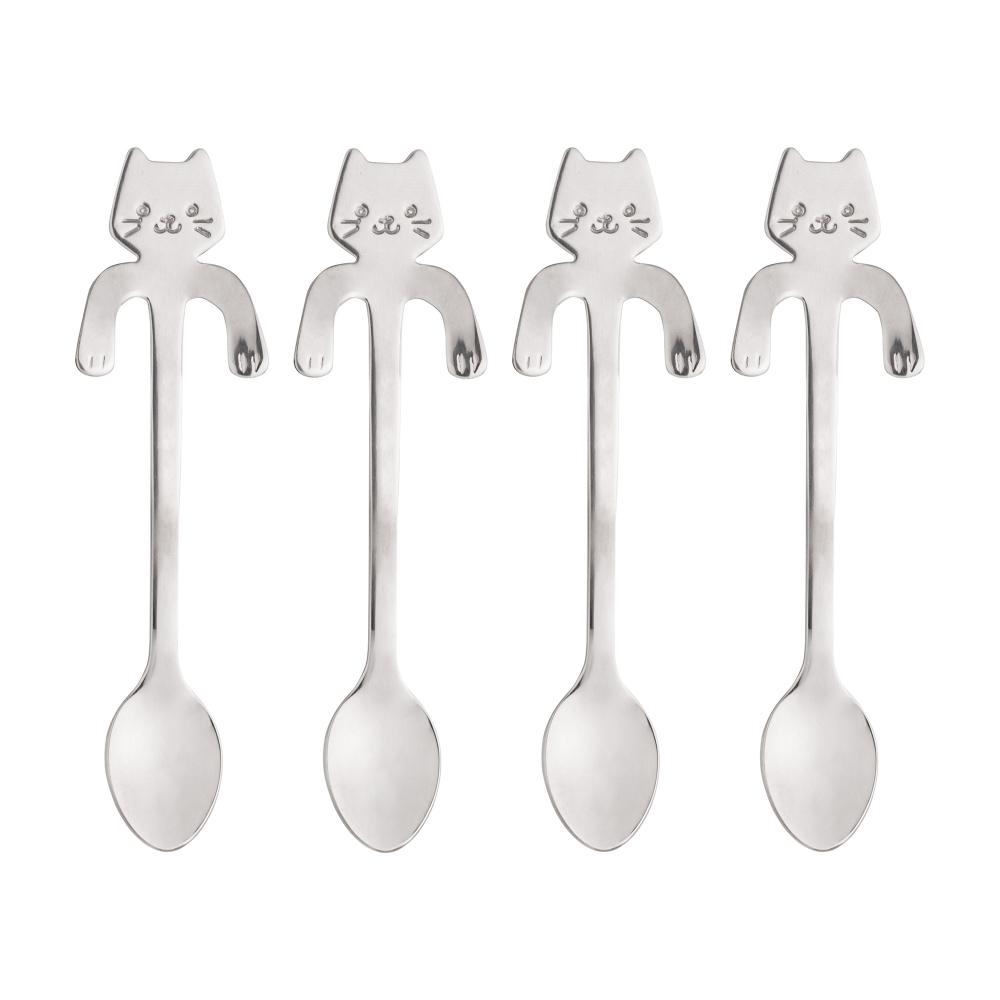 Conjunto de 4 Colheres de Chá Wolff Cat Prata de Aço Inox