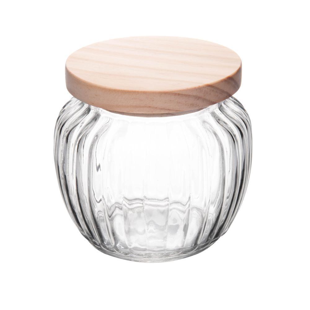 Porta Mantimento De Vidro Com Tampa De Pinus 600Ml