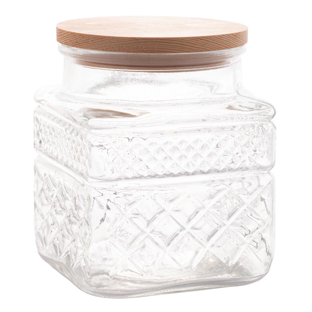 Porta Mantimentos Wolff de Vidro com Tampa em Madeira 1,2L