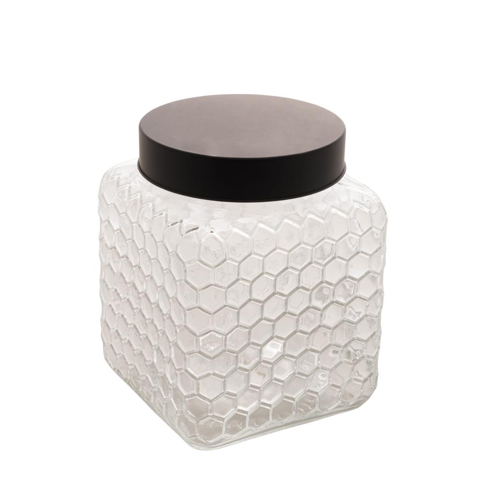 Pote de Vidro com Tampa Preta Colméia 13x16cm 1,8L