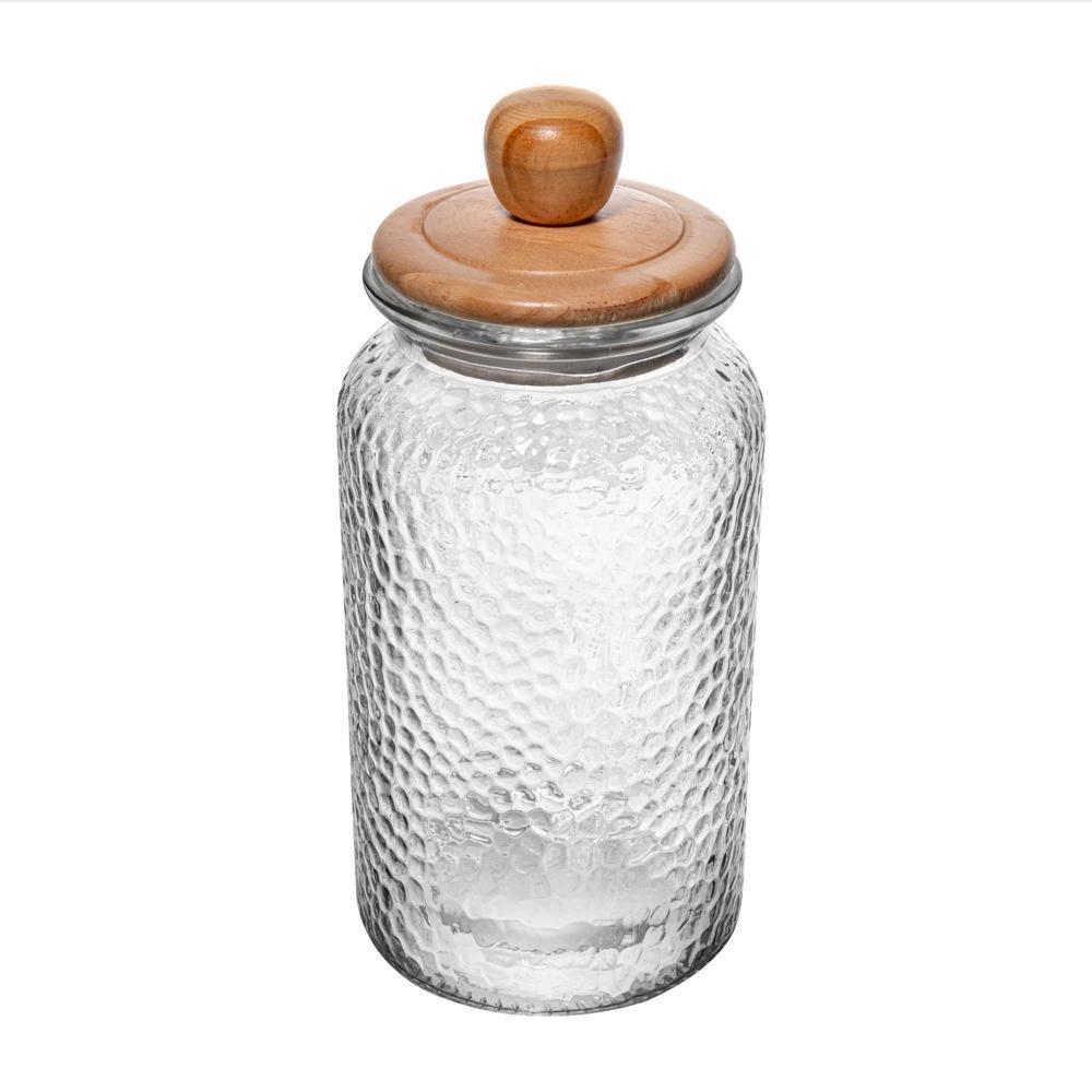 Porta Mantimento De Vidro Martelado Com Tampa De Bambu 1,3L