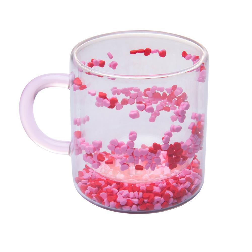 Caneca Parede Dupla de Vidro Borossilicato Rosa Heart 300ml