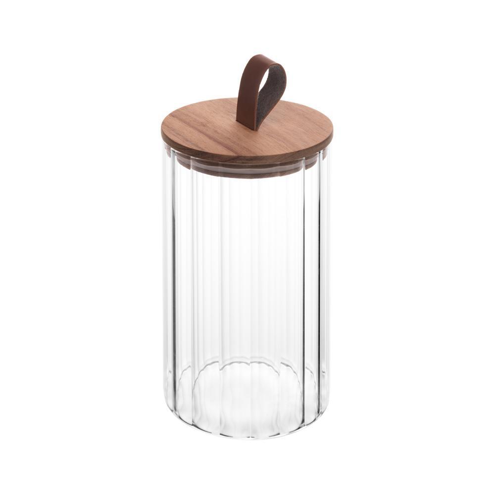 Porta Mantimento De Vidro Com Tampa De Acácia 1L