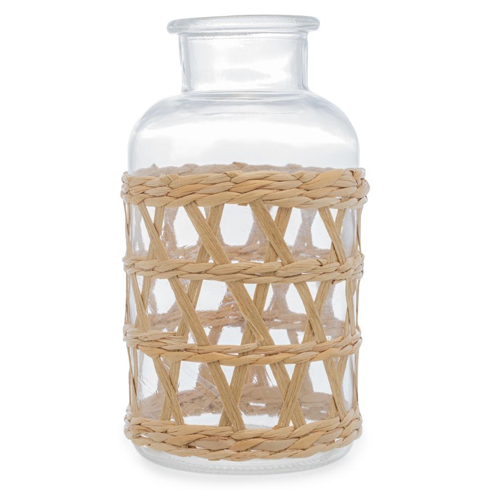 Vaso de Vidro e Fibra Natural 10cm x 19,5cm - Wolff