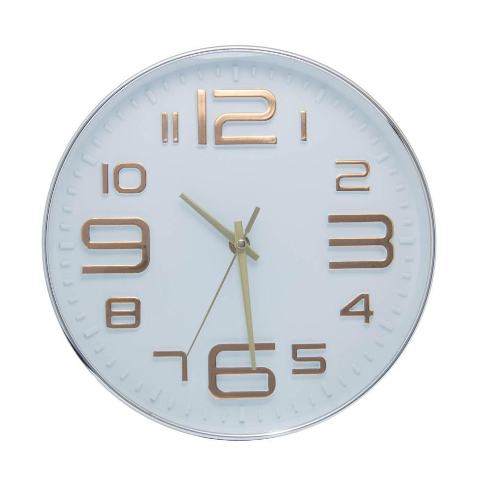 Relógio de Parede em Plástico Branco com Dourado 25cm- Lyor