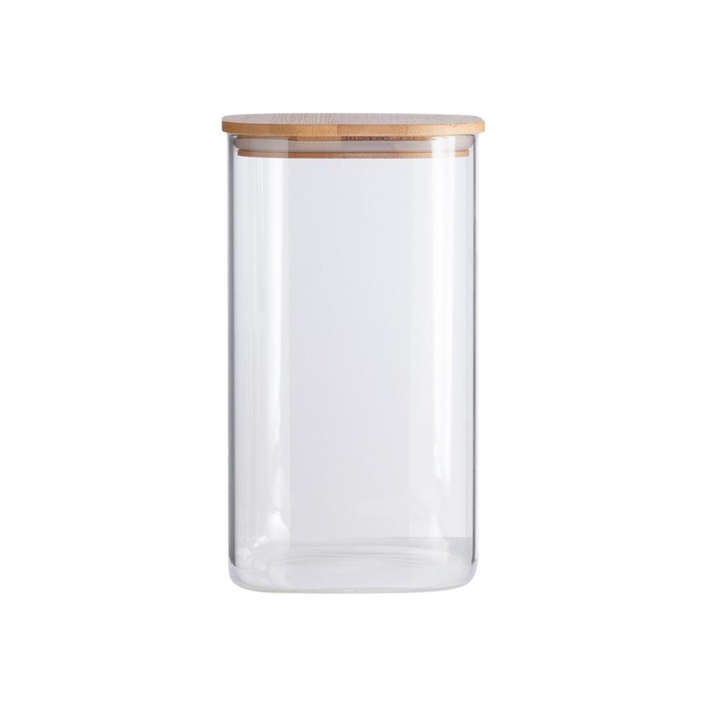 Pote 1,4L De Vidro Flat Com Tampa De Bambu Quadrado