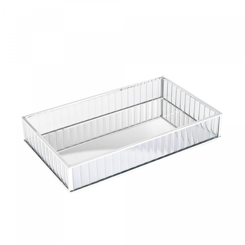 Bandeja de Metal com Espelho Prateada 25cm x 15cm x 4cm