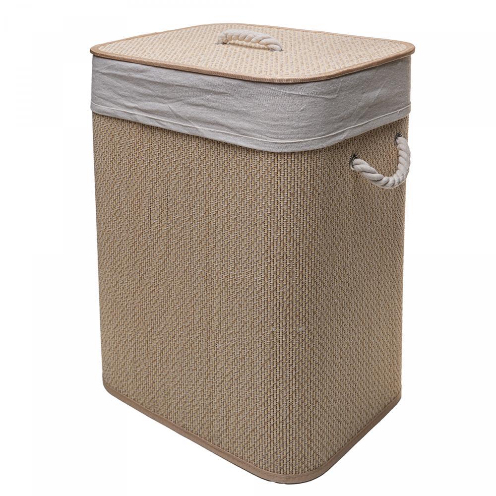 Cesto para Roupas Dobrável com Forro em Tecido em Bambu