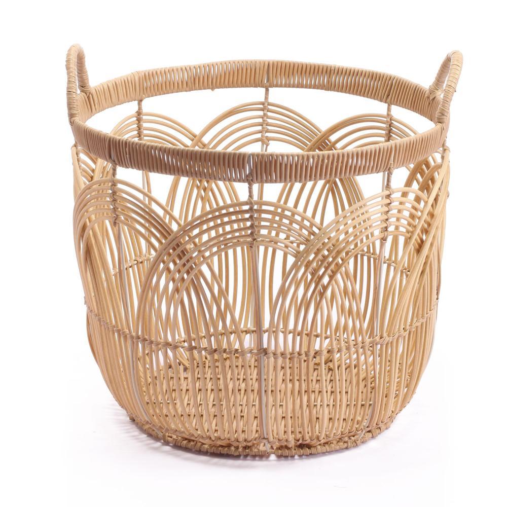 Cesto Redondo 40Cm Com Alças Arcos Palha Rattan - Oikos