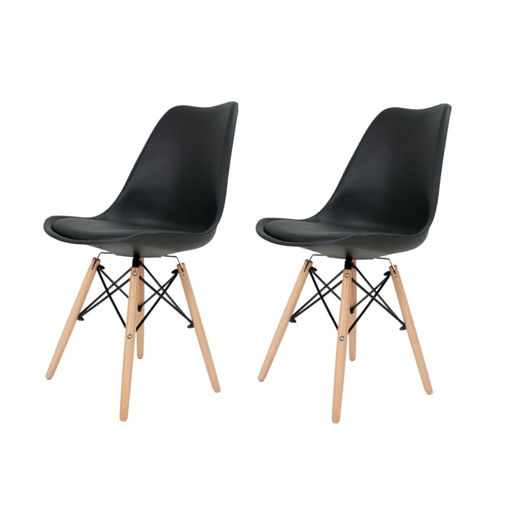 Conjunto Com 2 Cadeiras Saarinen Preta Base Em Madeira