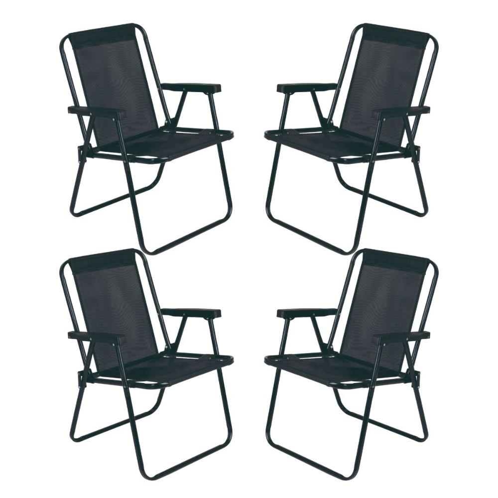 Jogo 4 Cadeira Alta Preta MOR Dobrável Reforçada até 110kg Praia Varanda Camping Jardim