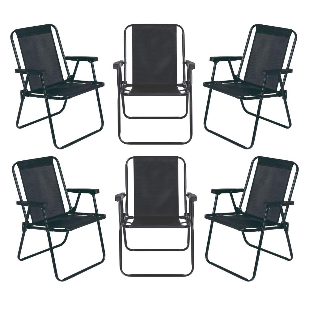 Jogo 6 Cadeira Alta Preta MOR Dobrável Reforçada até 110kg Praia Varanda Camping Jardim