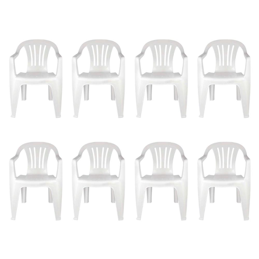 Kit 8 Cadeiras Poltrona Plástica Empilhavel Reforçada Branca 182kg Mor