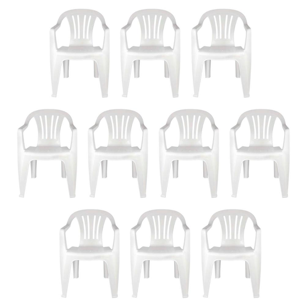 Kit 10 Cadeiras Poltrona Plástica Empilhavel Reforçada 182kg Mor