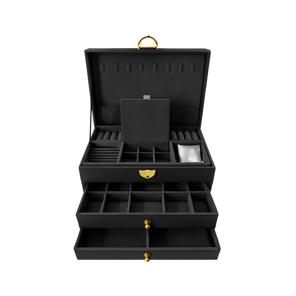 Porta Joias de Veludo 3 Níveis Preto OEM PRTJ-001PT