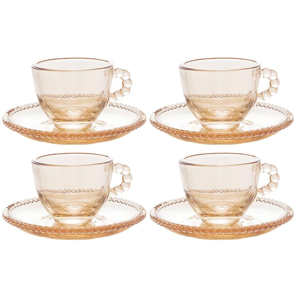 Conjunto com 4 Xícaras e Pires para Café Wolff Pearl em Cristal Âmbar - 80 ml