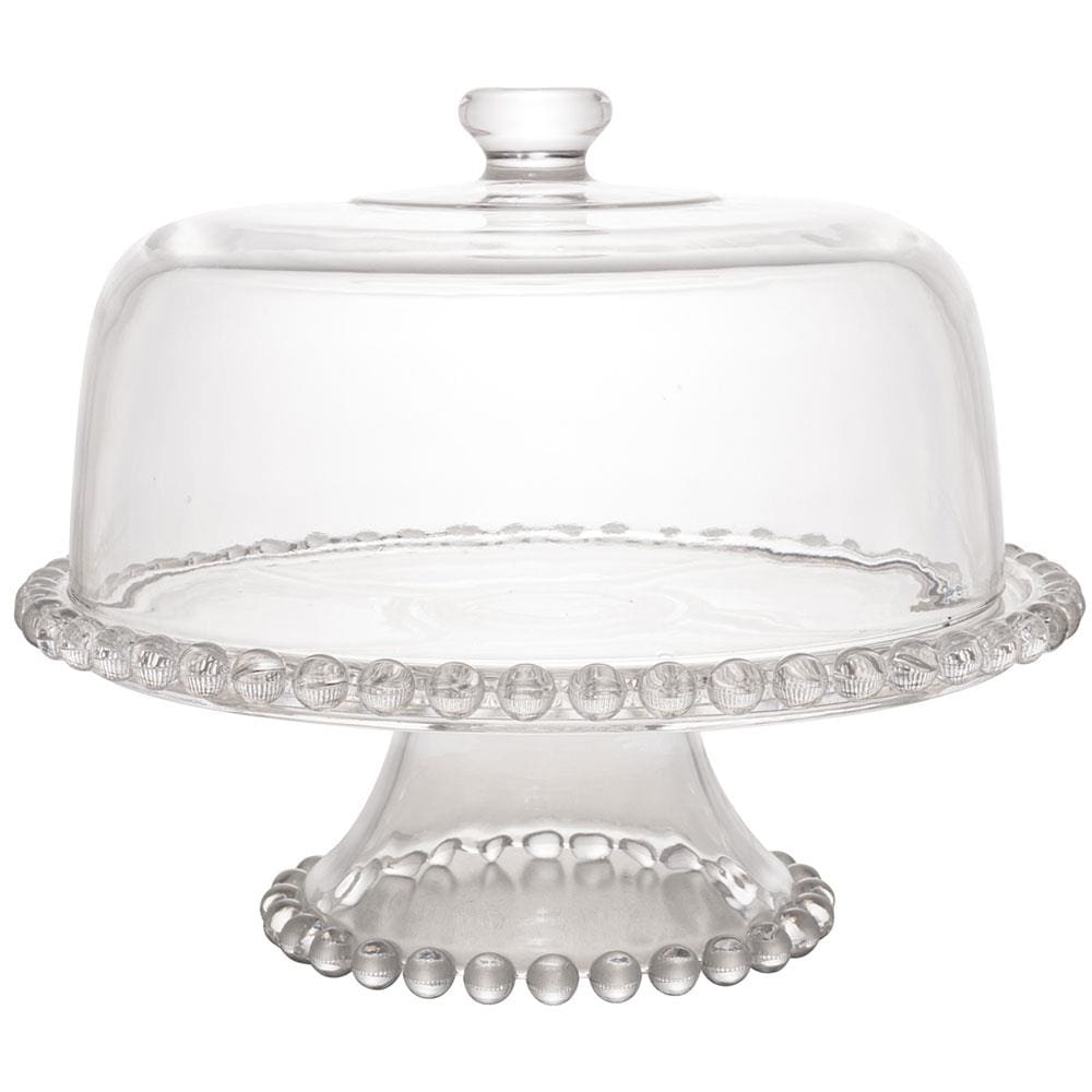 Prato para Bolo Wolff Pearl com Tampa e Pedestal em Cristal - 31 cm